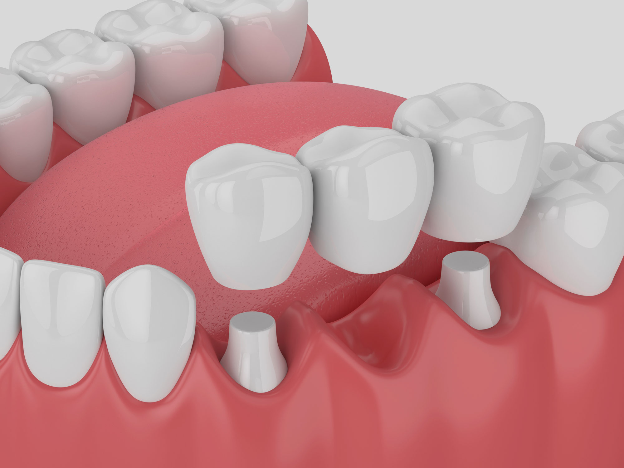 We begin by ensuring the supporting teeth are healthy and robust. These teeth are then prepared for crowns to be fitted by gently removing a thin layer of enamel.